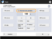 U kunt numerieke toetsen gebruiken> wordt weergegeven, kunt u numerieke waarden invoeren met de numerieke toetsen op het bedieningspaneel.Voorbeeld: <Zoompercentage>-instellingenscherm ![]() Wanneer <