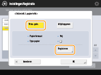![]() Als u de papierformaten die u het vaakst gebruikt, opslaat onder knoppen <S1> tot <S5>, kunt u ze met één aanraking oproepen. Opslaan van vrij formaat papier (papier van aangepast formaat)