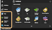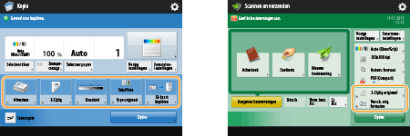 U kunt de instellingenknoppen wijzigen die worden weergegeven op de schermen met basisfuncties (voor kopiëren, faxen en scannen). U kunt ook een ander scherm met basisfuncties weergeven dat is aangepast voor elke aangemelde gebruiker.