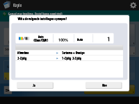 Als u <Aan> selecteert voor zowel <Weergave Bevestigingsscherm bij oproepen> als <Start activiteit voor oproepen (Actie start zodra op knop is gedrukt.)>, wordt kopiëren gestart nadat u <Ja> hebt geselecteerd op het bevestigingsscherm.