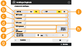 <Verific.scherm weerg. bij verzenden>Om bij het verzenden van e-mails en I-faxen de gebruikersnaam en het wachtwoord weer te geven in het invoerscherm, drukt u op <Aan>.