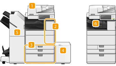 Voor informatie over de locaties van papierstoringen en de methode voor het oplossen van papierstoringen raadpleegt u het volgende diagram en de verwijzingen.