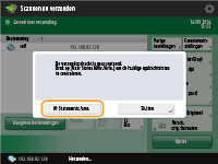 Als u de storing hebt opgelost, verschijnt het scherm taak hervatten. Als de machine ten onrechte invoer van meerde vellen detecteert, drukt u op <Aanvoer meerdere vellen niet detecteren> om het scannen te hervatten. Voer een van de volgende handelingen uit om de machine vooraf in te stellen op het niet melden van invoer van meerdere vellen.