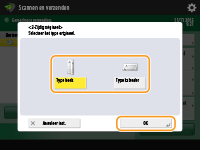 <Boven aan verste rand> <Oriëntatie inhoud origineel> <OK>.Als u grote originelen plaatst van bijvoorbeeld A3-formaat, drukt u op <Opties> op het scherm met basisfuncties voor scannen