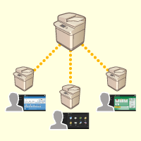 Ekrany domyślne dla każdej funkcji, a także często używane funkcje mogą być zarejestrowane dla każdego użytkownika. Możesz również utworzyć własną wyjątkową listę adresów i foldery, w których zapisywane są skanowane dokumenty.