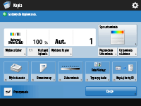 Naciśnij na przyciski funkcji na ekranie <Główne Menu>, aby wyświetlić ekran Podstawowych funkcji z poziomu którego można uzyskać dostęp do kopiowania, faksowania i skanowania. Pomimo że wyświetlane elementy i ustawienia ekranu Podstawowych funkcji różnią się, w zależności od dostępnych funkcji, można zmienić te ustawienia zgodnie z własnymi potrzebami.