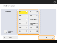 ![]() Można również wybrać ustawienie <Dowolny rozmiar>, w przypadku którego określenie formatu papieru nie jest konieczne. Ustawienie <Dowolny rozmiar> należy wybrać w przypadku, gdy papier używany do funkcji kopiowania ma nieznany format albo gdy format papieru został wcześniej zapisany w sterowniku drukarki.