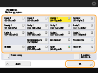 Jeżeli wyświetlony zostanie ekran inny, aniżeli ekran określania formatu i rodzaju papieruJeżeli wyświetlony zostanie komunikat informujący o konieczności regulacji prowadnic papieru, należy wyregulować te prowadnice i nacisnąć na <OK>.