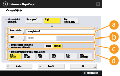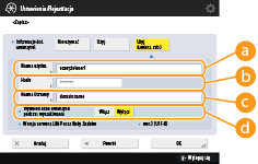 Przykład: Jeżeli nazwa domeny Windows to „przykład” i nazwa użytkownika Windows to „użytkownik1”, wprowadź „przykład\użytkownik1”. Jeżeli korzystasz z systemu Lotus Notes Domino, wprowadź nazwę identyfikującą użytkownika uwierzytelnionego (dn), na przykład: cn=użytkownik1,ou=zespół1,ou=działsprzedaży,o=canon.