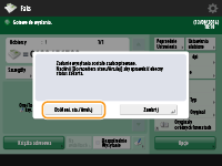 <Raport TX>, aby ustawić automatyczne drukowanie raportu z listą wyników wysyłania.Jeżeli podawanych jest wiele arkuszySkanowanie zostaje zatrzymane, a na ekranie zostanie wyświetlony komunikat. Należy postępować zgodnie z instrukcjami, aby usunąć blokadę papieru. Po usunięciu blokady zostaje wyświetlony ekran wznawiania zadania. Jeżeli urządzenie omylnie wykryje, że wprowadzono wiele arkuszy na raz, naciśnij pozycję <Nie wykrywaj pod. wielofunk.>, aby wznowić skanowanie.