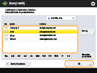 Odbiorca wiadomości e-mail z powiadomieniem musi zostać wybrany z Książki adresowej. Należy wcześniej zarejestrować ten adres w Książce. Rejestrowanie odbiorców w książce adresowej