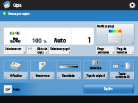 , apresentado no Menu principal e no ecrã das funções básicas, para personalizar o ecrã através da reorganização de botões ou da criação de uma tecla de atalho. Só um administrador pode personalizar o Menu principal. Personalizar o visor do painel digital![]() É possível alterar as programações relacionadas com a apresentação do ecrã, como, por exemplo, que ecrã é apresentado imediatamente depois de ligar a máquina e se é apresentada a mensagem de quantidade restante de papel e toner. <Programações de apresentação>