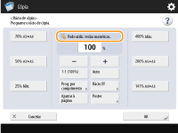 Pode utiliz.teclas numéricas.>, pode introduzir valores numéricos utilizando as teclas numéricas no painel de controlo.Exemplo: Ecrã de programação <Rácio de cópia> ![]() Quando é apresentada a mensagem <