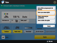 Se selecionar <Ligado> para <Começar operação para chamada (a operação começa quando se carrega no botão).>, a operação de cópia começa quando carrega no botão no Menu rápido sem carregar em