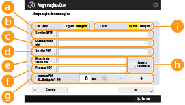 ![]() <Autenticação SMTP (SMTP AUTH)>Para utilizar a autenticação SMTP, carregue em <Ligado>, introduza o nome de utilizador e a password das contas de correio especificadas em <Nome do utilizador> e em <Password>.