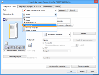 Selecione [Armazenar] de [Método de Saída] e clique em [Sim].