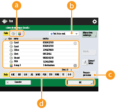 Selecionar o nome de um remetenteNo ecrã das funções básicas de fax, carregar em <Opções>