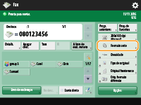 Para verificar os estados dos documentos enviadosNo ecrã <Controlo estado/Cancelar>, pode verificar os estados dos documentos enviados. Este ecrã permite enviar faxes novamente ou cancelar o envio após a verificação dos estados. Verificar o estado e o registo de documentos enviados e recebidos