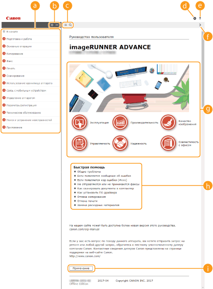 Служит для просмотра важных сведений, с которыми необходимо ознакомиться перед использованием аппарата.
