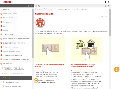 Служит для отображения указаний по просмотру документа Руководство пользователя, выполнению поиска и прочим операциям.