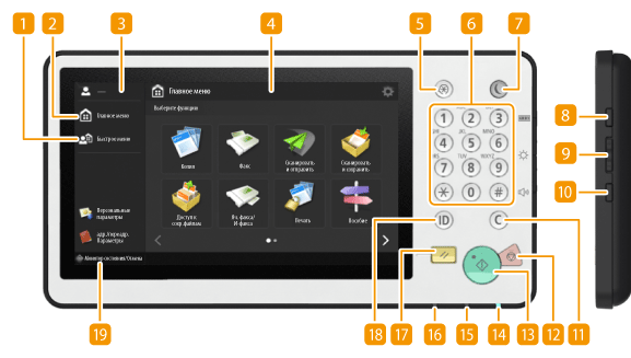 Нажмите для отмены, копирования, отправки и получения факсов и выполнения ряда других действий.