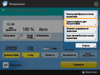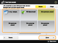 Если выбрать значение <Вкл.> для параметра <Запустить вызываемую операцию (Операция запускается при нажатии кнопки.)>, то копирование запустится сразу после нажатия соответствующей кнопки на экране Быстрое меню (нажимать клавишу