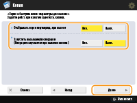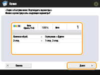 Если для параметра <Запустить вызываемую операцию (Операция запускается при нажатии кнопки.)> установлено значение <Выкл.>, то отобразится экран настройки. На нем можно изменить параметры, прежде чем нажать клавишу