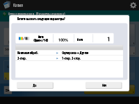 Если для параметров <Отображать экран подтвержд. при вызове> и <Запустить вызываемую операцию (Операция запускается при нажатии кнопки.)> выбрать значение <Вкл.>, копирование запустится после нажатия кнопки <Да> на экране подтверждения.