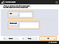 Нажмите <Имя> или <Комментарий> для ввода текста. Поскольку содержимое обоих этих полей отображается на кнопке на экране Быстрое меню, в поле <Имя> рекомендуется указать имя параметра, а в поле <Комментарий> — подсказку по его использованию.