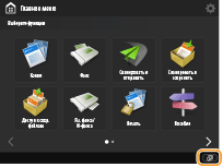 Можно изменять язык интерфейса сенсорного дисплея и раскладку экранной клавиатуры. Если требуется часто переключать языки, можно воспользоваться кнопкой <Перекл. языка/клавиатуры>. Ниже представлен порядок отображения этой кнопки на сенсорном дисплее.
