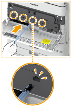 Верните палочку для очистки на переднюю крышку основного аппарата в положение острым концом влево.