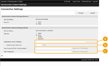 Если служба для синхронизации пользовательских параметров запущена на аппарате-сервере (если аппарат является сервер-клиентским аппаратом, параметр можно изменить путем одновременного запуска службы сервера и службы клиента).