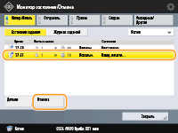 , задание копирования приостанавливается и на дисплее отображаются сообщение <<Стоп>Выбер. задание на копир., которое необх. отменить.> и список заданий копирования. Выберите в списке задание копирования, которое нужно отменить, и нажмите кнопку <Отмена>. |