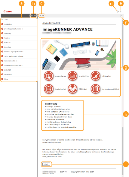 Klicka här för att få information om hur du visar Användarhandbok, gör sökningar och visar annan information.
