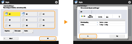 Tryck på <Kopia> på huvudmenyn och ange de inställningar som du vill registrera.