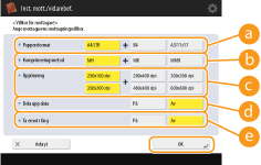 <Upplösning>Välj ett högre värde för att öka upplösning och bildkvalitet. Om du väljer en högre upplösning ökar överföringstiden.