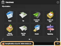 Tonerspillbehållaren är nästan full. Du kan fortsätta skriva ut en stund, men du bör ha en ny tillgänglig så att du kan byta ut den direkt när det behövs. Om du bestämmer dig för att byta ut tonerspillbehållaren när meddelandet visas, trycker du på ikonen längst ned till höger på skärmen och följer anvisningarna för att utföra bytet.