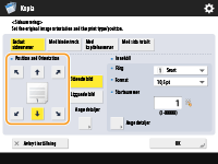 Kopiesatsnummer kan skrivas ut tillsammans med datum eller text. <Utskriftsinställningar>