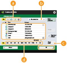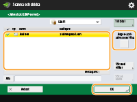 Ange mottagare på skärmbilden med grundläggande scanningsfunktioner.