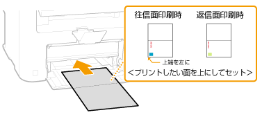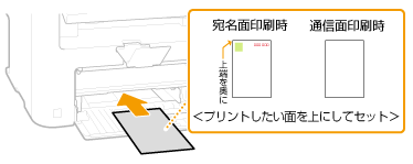 4面はがきの場合も、プリントする面を上にして、上端が奥側になるようにセットします。