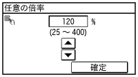 またはテンキーで倍率を入力し、<確定>をタップします。倍率は25~400%まで1%刻みで設定できます。