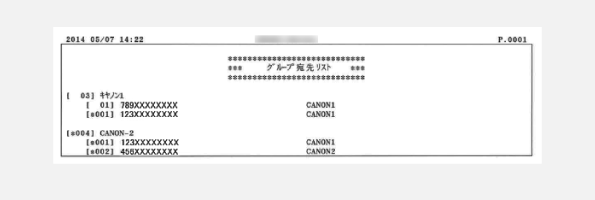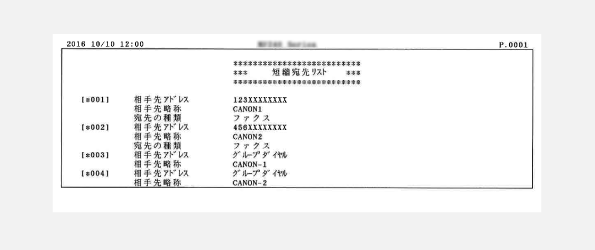 アドレス帳に登録されている宛先の内容をリストで確認できます。登録内容は短縮ダイヤル、ワンタッチダイヤル、グループダイヤルごとに確認できます。