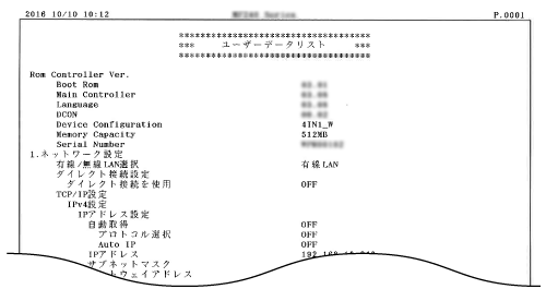 )とその内容をリストで確認できます。リストには登録されている用紙のサイズと種類、送信結果レポート、通信管理レポート、受信結果レポートのプリント設定などがプリントされます。