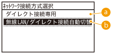 任意のSSIDとネットワークキーを設定するダイレクト接続に使用するSSIDやネットワークキーを自分で入力して設定することができます。任意のSSIDを設定すると、同時に5台まで本機に接続が可能になります。アクセスポイントモード設定 ダイレクト接続を自動的に切断するダイレクト接続開始から一定時間が経過すると、ダイレクト接続が自動的に切断されるように設定することができます。ダイレクト接続の方式が<無線LAN/ダイレクト接続自動切替>に設定されていると、ダイレクト接続の切断後、自動的に無線LANに接続されます。 有線LANか無線LANかを選択する (MF249dw / MF245dw) ダイレクト接続の自動切断時間 |