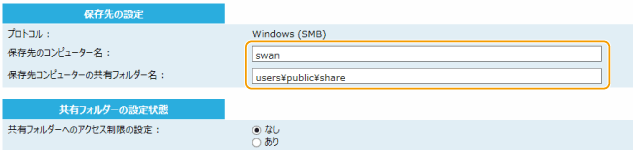 [共有フォルダーの設定状態][共有フォルダーへのアクセス制限の設定]
