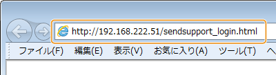 ウェブブラウザーのアドレス入力欄に「http://<本機のIPアドレス>/sendsupport_login.html」と入力し、キーボードの[ENTER]を押します。
