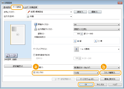 それぞれのタブをクリックして、スタンプとして表示する文字、色や配置などを設定します。各設定項目の詳細については、ドライバー画面の[ヘルプ]をクリックして、ヘルプを参照してください。