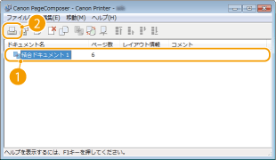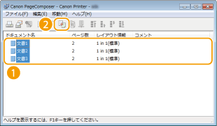 | | Canon PageComposerという機能を使って、いくつかの文書を1つに結合して、一度に印刷できます。結合した文書に対してまとめて印刷設定ができるので、異なるアプリケーションで作成した文書を結合して、すべてのページを同じサイズの用紙に印刷するといった使いかたもできます。 |