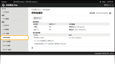 ポータルページ(メイン画面)で、[消耗品詳細]をクリックしてもこのページを表示できます。