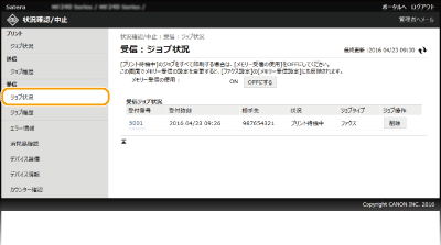 受信したファクスの状況(印刷中/印刷待機中)を最大90件まで確認できます。